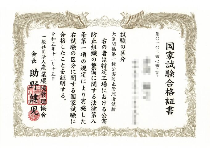 本記事は公害防止管理者大気1種の合格体験記です。