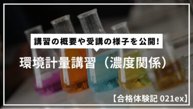 合格体験記 【合格体験記 021ex】環境計量講習の概要や受講の様子を公開! 当ブログをご覧頂きありがとうございます。かいぱです。本記事は『環境計量士(濃度関係)』に関する環境計量講習の内容を記載しています。2023年7月11~14日に受講し、修了しました。なお本講習を受講するには環境計量士国家試験をパスする必... 2025.09.28 合格体験記環境