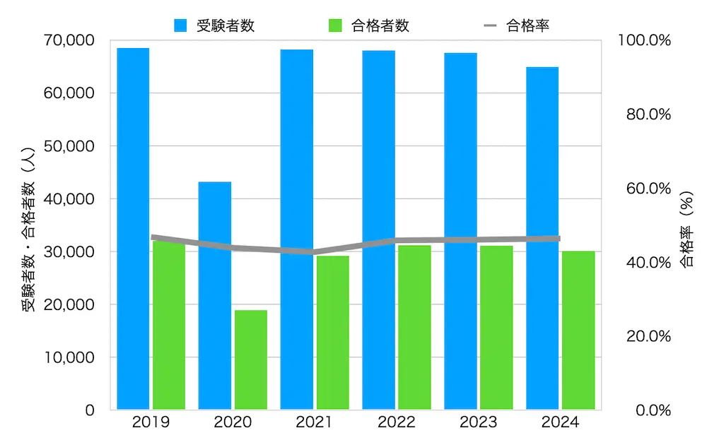 毎年7万人近くが受験しており、さすがの人気資格となっています。
