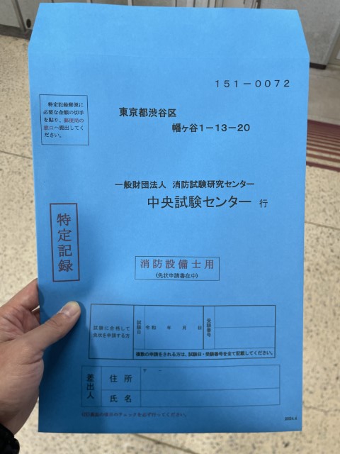 結局は、結果通知書(兼消防設備士免状交付申請書)と受験後に手渡される青封筒+内容物があればOK。