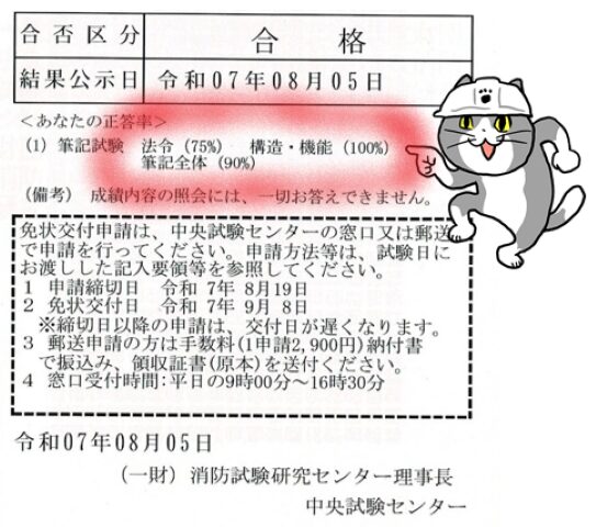 2025年8月5日に合格発表がありました。(→免状交付申請中)