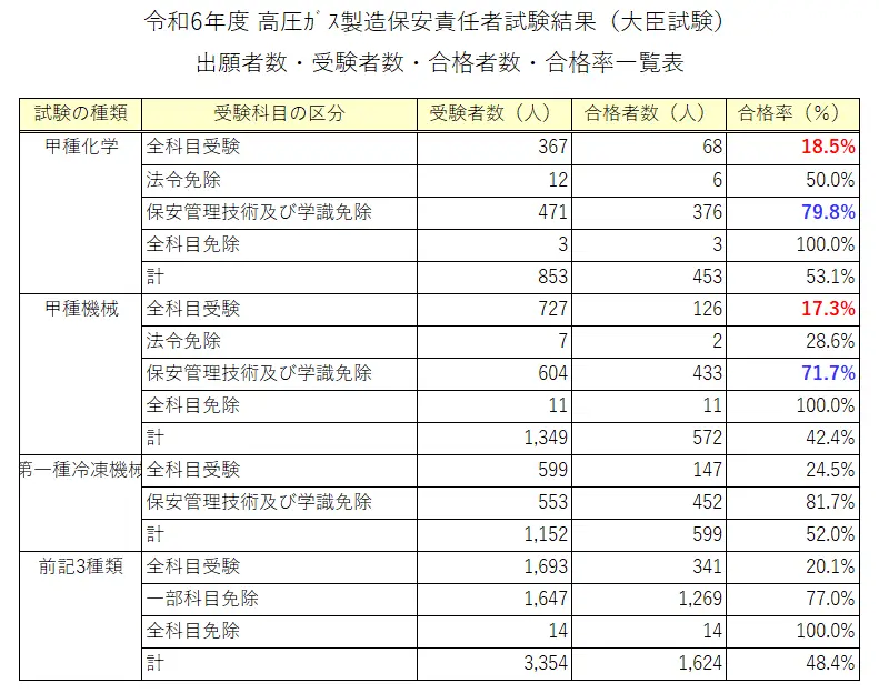 試験は化学・機械・冷凍機械の専門分野があり、難易度別に甲種、乙種、丙種(冷凍機械は一種、二種、三種)に分かれます。