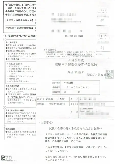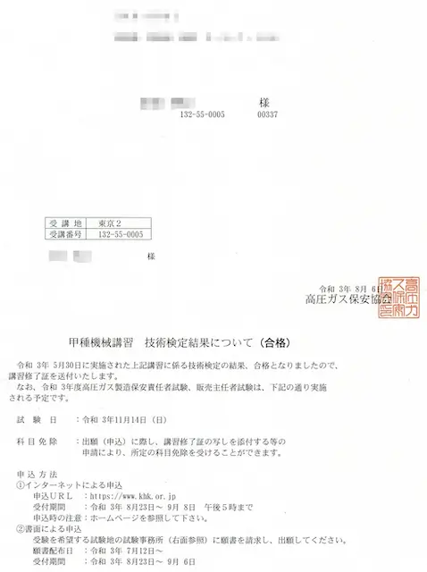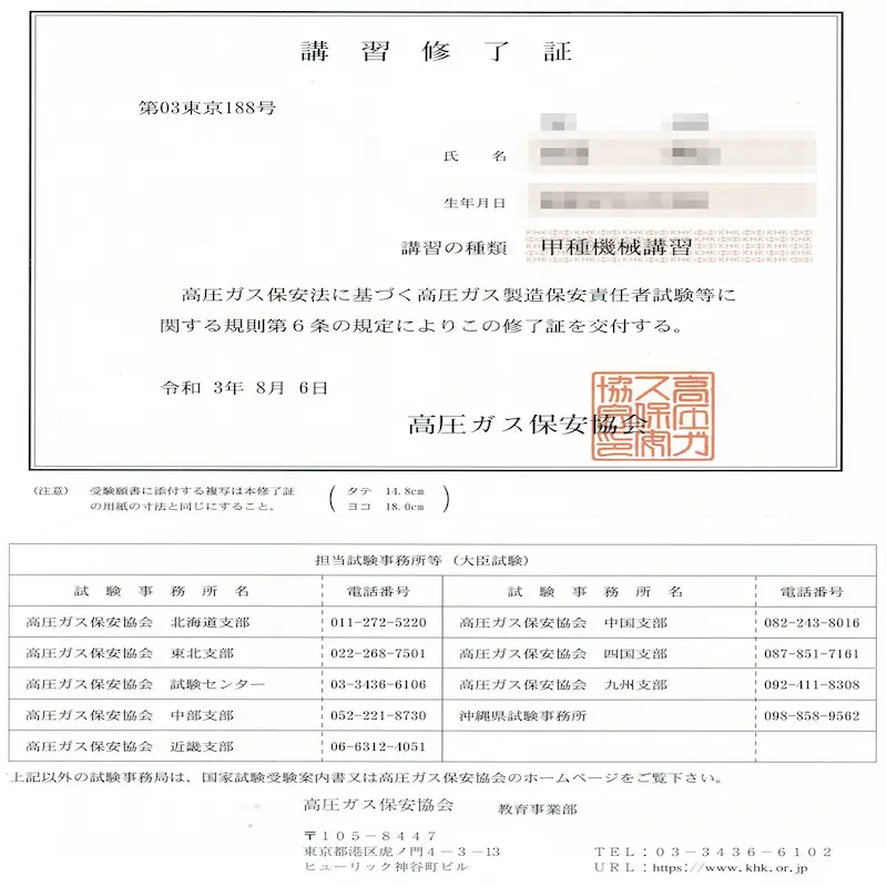 危険物取得後に(親会社)の同期は、高圧ガス甲種取得のために休日返上で学習していました。