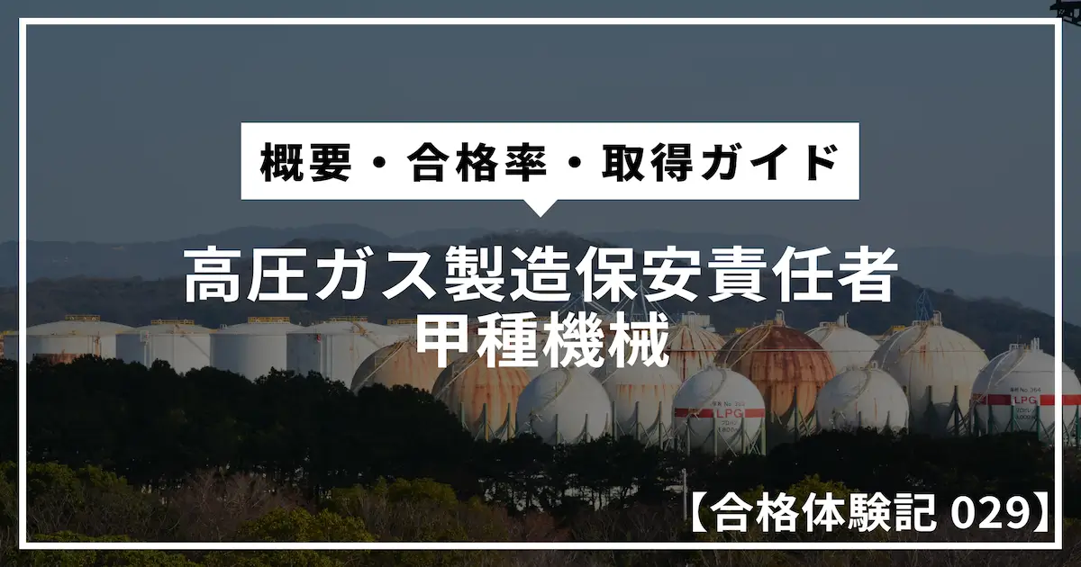 本記事では『高圧ガス製造保安責任者(甲種機械)』について合格体験記と合わせて紹介します。