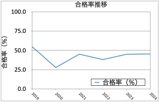 2019〜2024年の合格率推移は以下のとおりです。