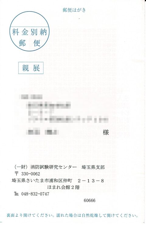その後ほどなくして、結果通知書(ハガキ)が届くであります。