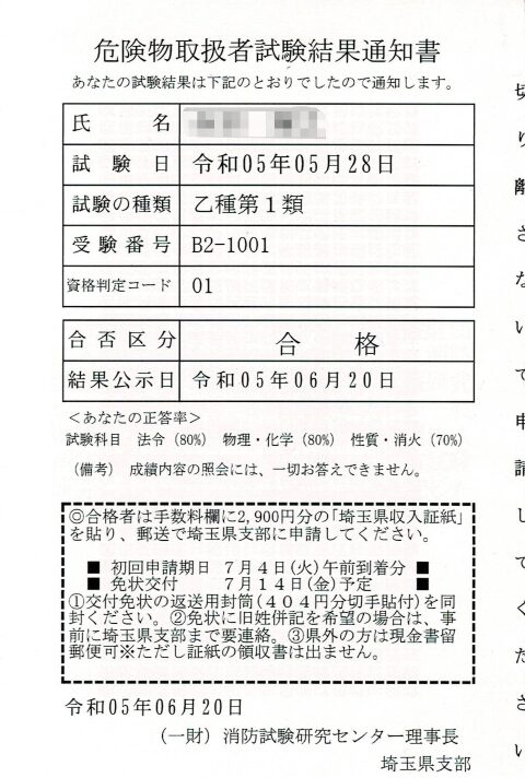 なお危険物取扱者試験は問題用紙が回収されるため、自己採点は実質不可能です。