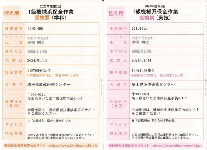 受験票は3級同様、学科と実技で別なので忘れず両方持参しましょう。