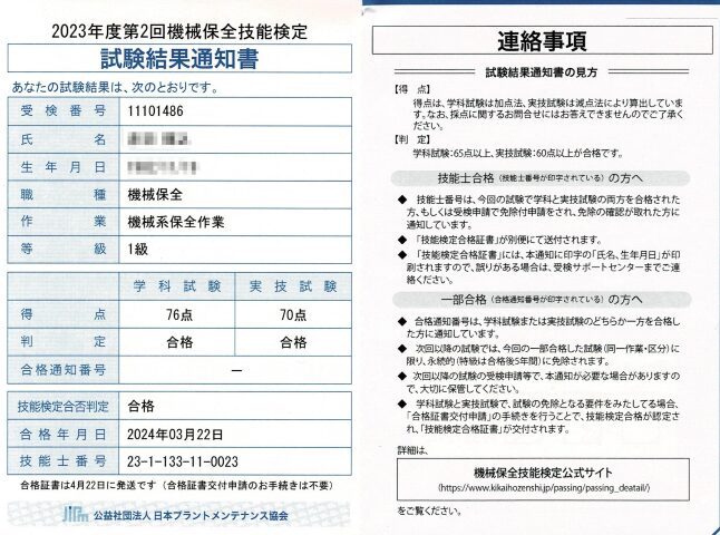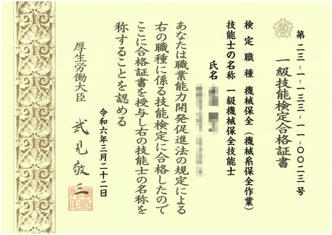 本記事は『機械保全技能士 1級 』の合格体験記です。