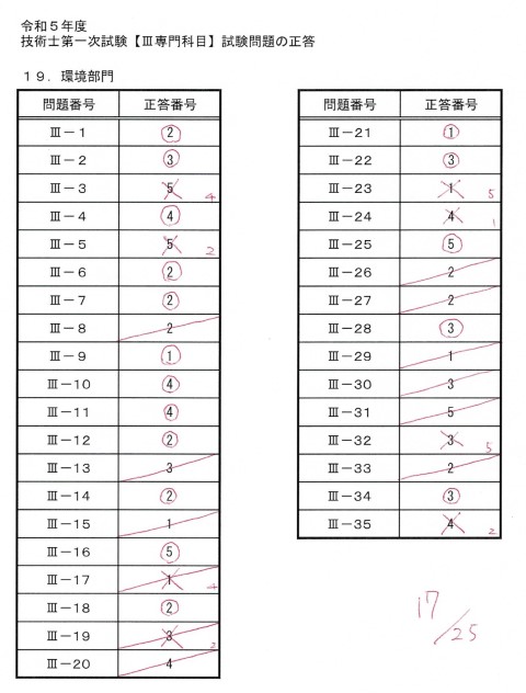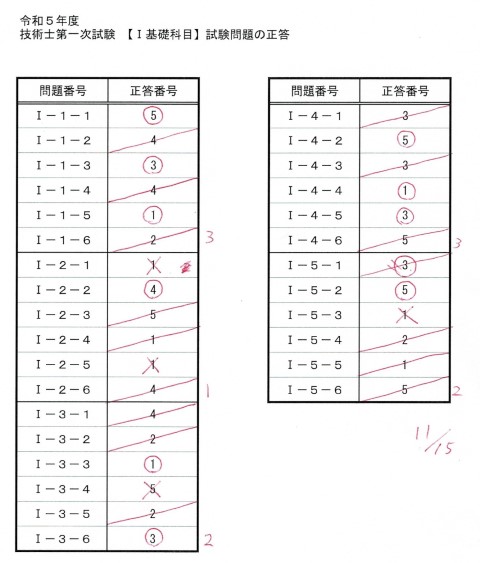 試験の翌日(月曜日)には公益社団法人 日本技術士会HPに択一問題の解答が掲示されるので自己採点しました。