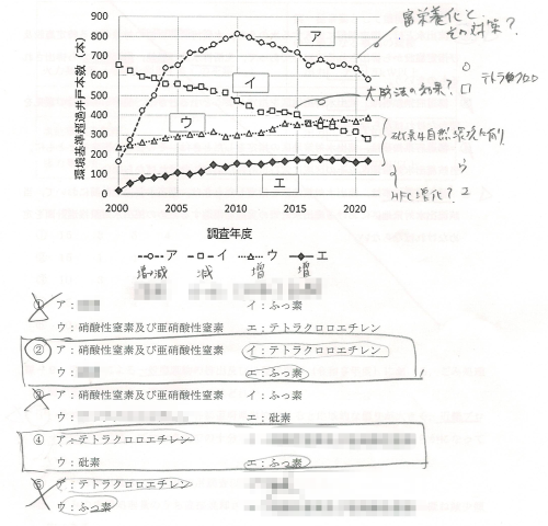 環境法令、環境汚染、エネルギー情勢、化学分析、生物多様性等について、かなり高難度の問題ばかり出題されます。