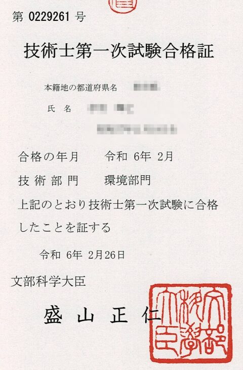 本記事は『技術士 第一次試験(環境部門)』の合格体験記です。