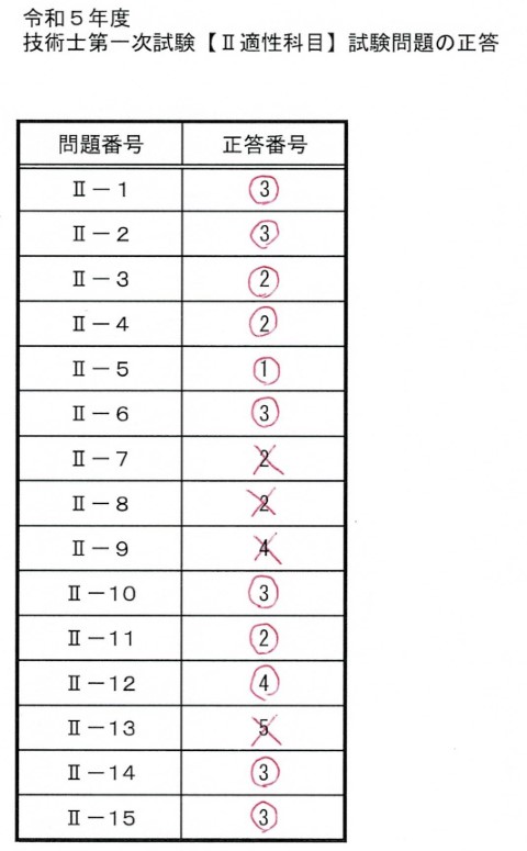 試験の翌日(月曜日)には公益社団法人 日本技術士会HPに択一問題の解答が掲示されるので自己採点しました。