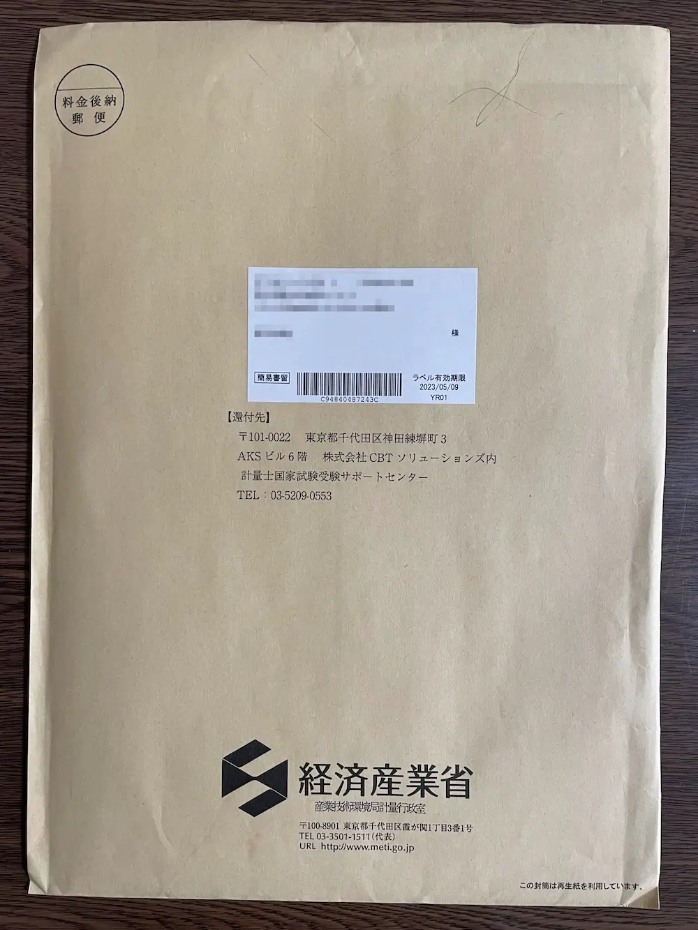 で、受けとった封筒がこちら。
