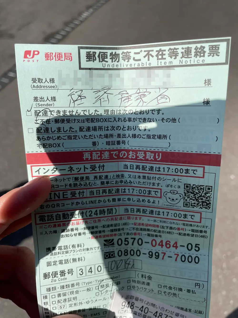 自宅に不在票が届く。
