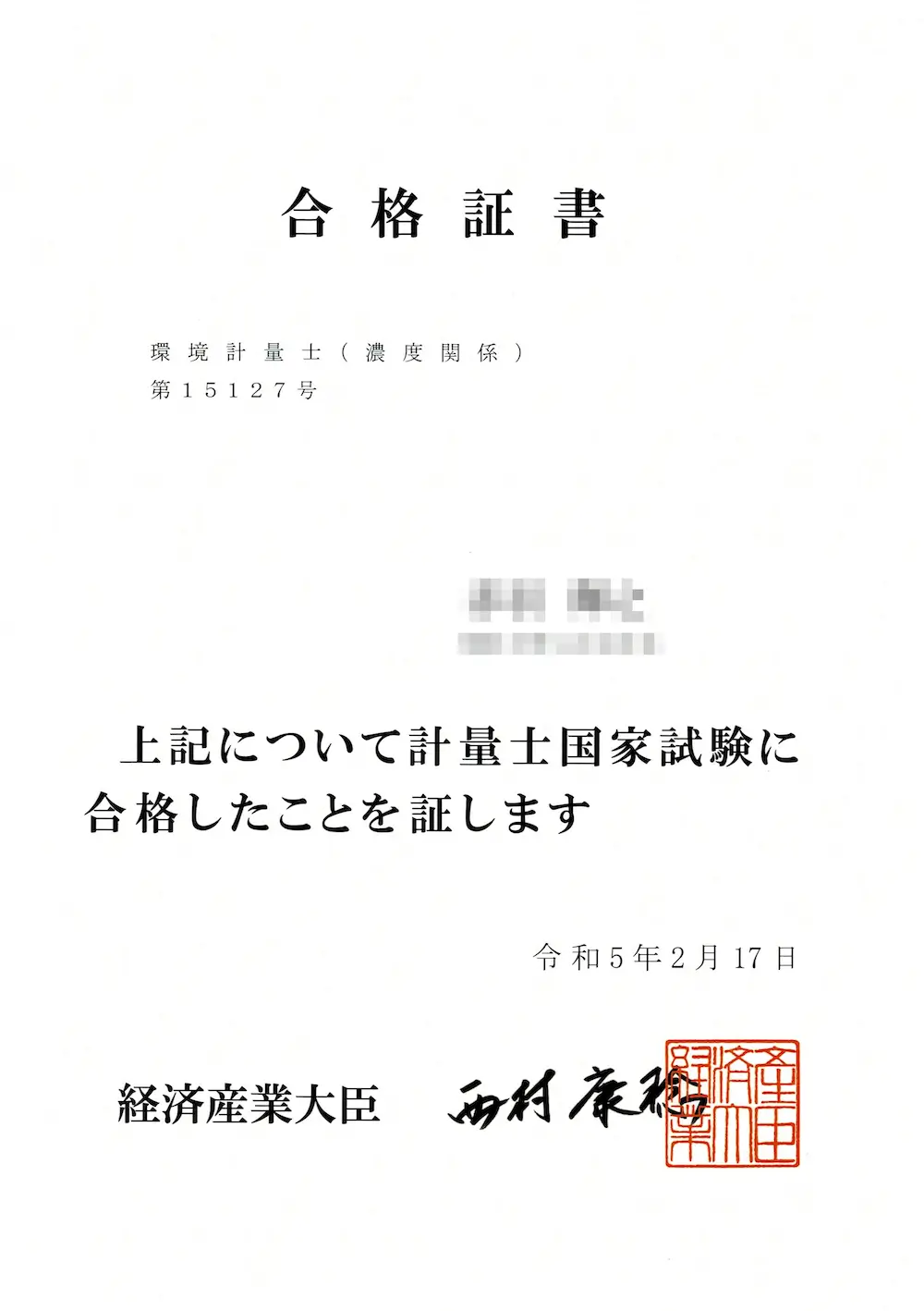 2023年2月17日に試験合格しました。