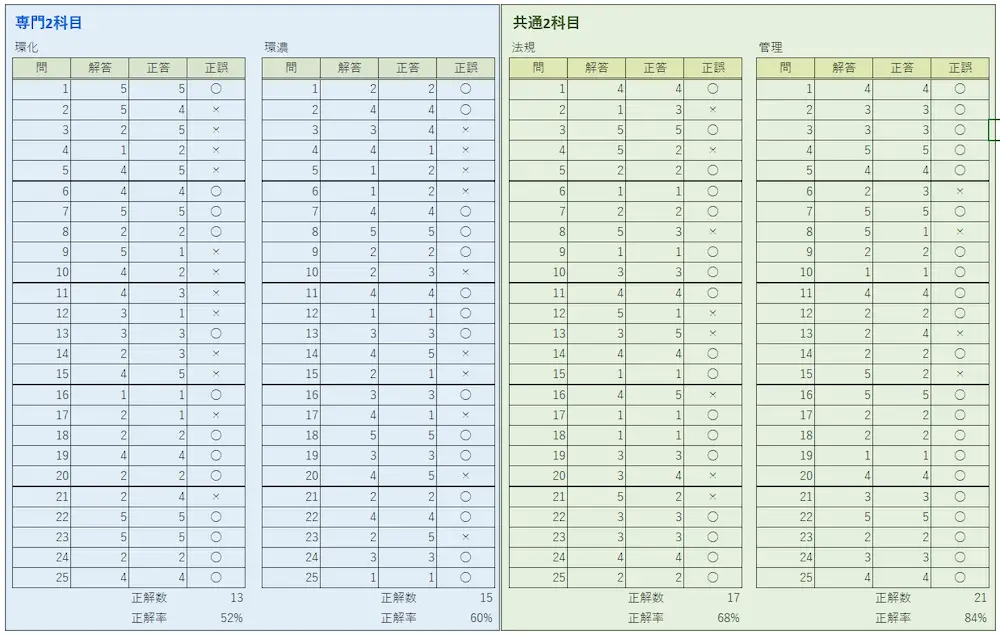 当然と言えば当然ですが、予備知識の有無によって勉強時間は大きく異なり、特に環濃の分析関連は実務経験によって大きく短縮できそうです。