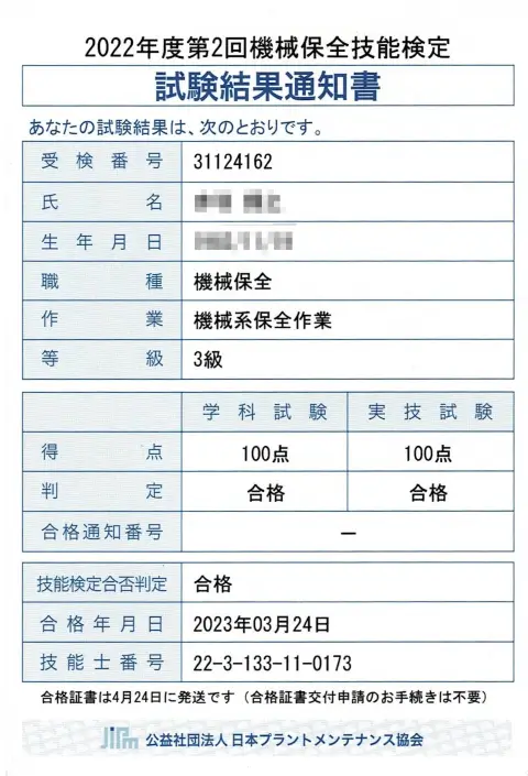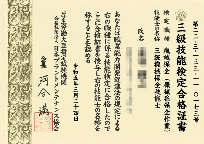 本記事は、「機械保全技能士 3級」の合格体験記です。