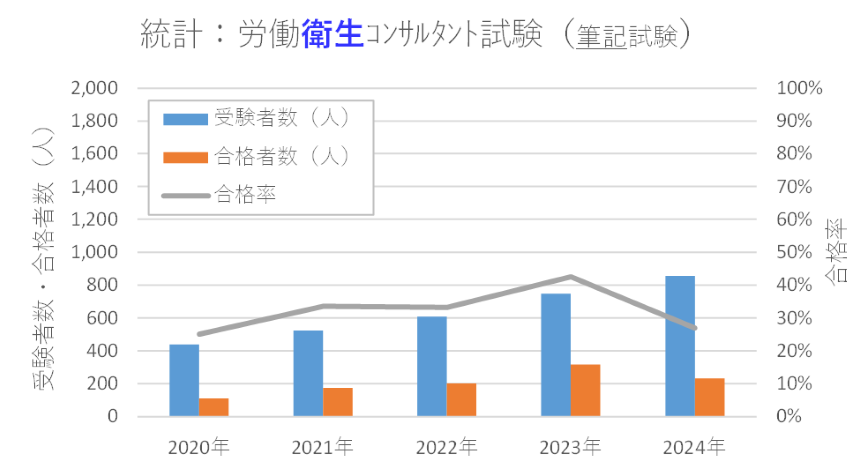労働衛生コンサルタント試験では筆記免除で口述試験に臨まれる方が多く、口述試験の受験者の半数以上がこのケースのようです。