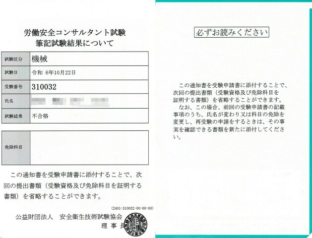 不合格(筆記試験)