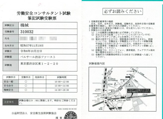 | 産業安全一般 | 30 | 10:00~12:00 (2時間) | 全問解答 |