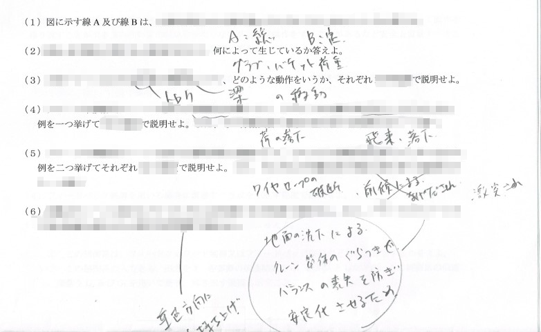 問1.クレーン等に関する用語や装置等に関する理解と災害想定の問題