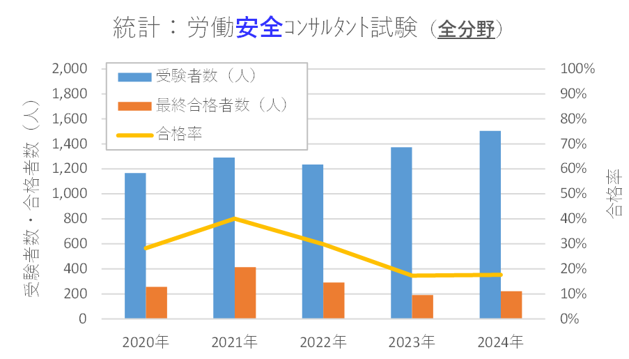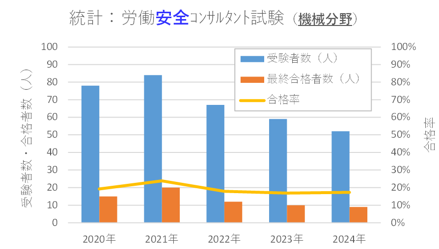 労働安全コンサルタント試験の最終合格率は右肩下がり。