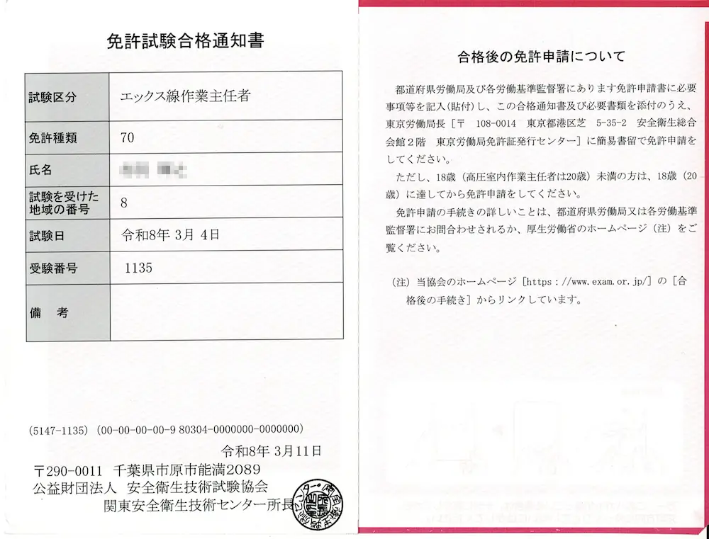 この資格を取得することで、エックス線関連設備を有する事業場において、放射線安全管理の中核を担う人材として評価されやすくなります。