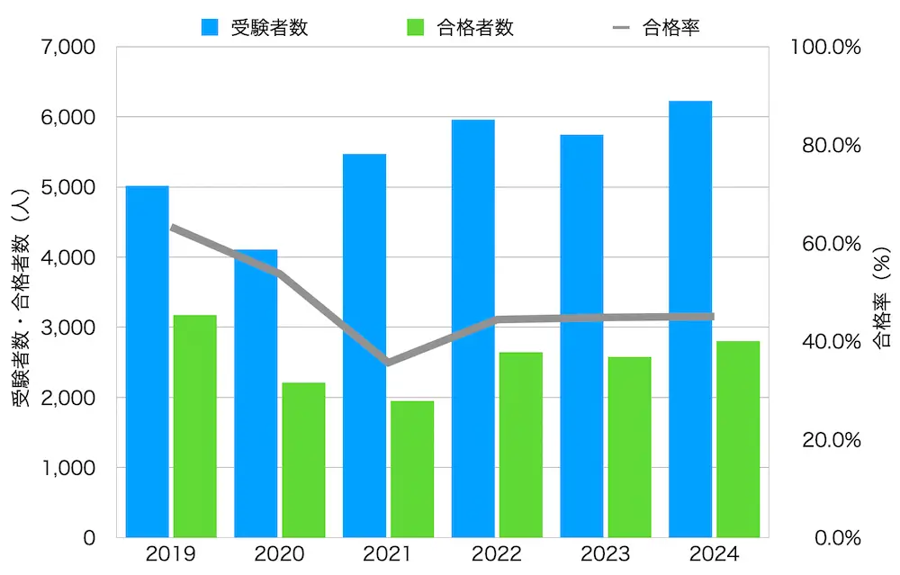 合格率は50%前後で推移し、近年45-52%程度となっています。
