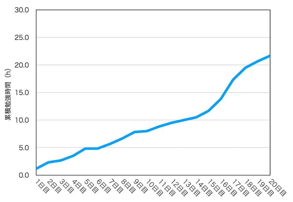 累積勉強時間の推移は下図のとおりです。